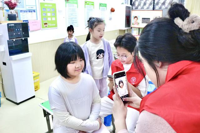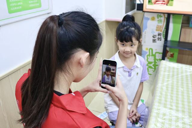 在活动尾声的“未来职业AI成像”环节,志愿者首先为每位学生拍摄正面肖像照,随后围绕“未来职业理想”展开交流,引导学生表达对职业的憧憬。借助AI技术,学生的肖像与对应职业场景深度融合,实现“理想表达—技术成像—视觉反馈”的闭环。让抽象的职业理想转化为具象的视觉体验,既深化了活动的育人内涵,也为非遗课堂赋予了成长引导的附加价值,现场学生在看到“未来职业形象”时,纷纷表达对未来的期待,活动氛围达到高潮。