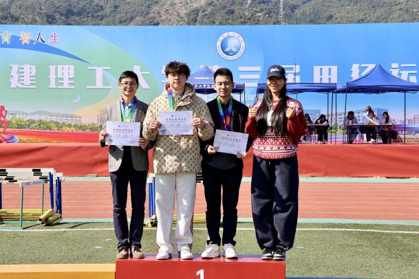青春逐梦燃赛场,同心聚力谱新章。2025年11月19日至21日,在福建理工大学第三届田径运动会上,设计学院运动健儿们怀揣热忱、驰骋赛场,在速度与力量的较量中奋勇争先,以汗水诠释体育精神、彰显设计风貌,最终斩获“教工组团体总分第七名”和“2024-2025学年体育竞赛优胜奖第六名”的佳绩。