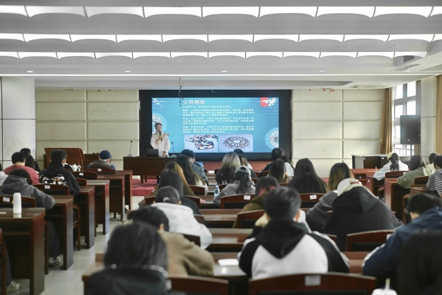 2025年11月27日下午,设计学院特邀云肩制作技艺非遗代表性传承人、福州大学非物质文化研究中心云肩制作技艺研究员李玉兰为师生带来一场关于非遗云肩传承与创新发展的精彩讲座。