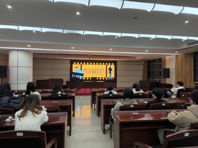 厦门尘尘智界信息技术有限公司是闽南区域新媒体运营领域的领军企业,成功孵化数十个商业变现超百万的IP,还为多家央企及下辖区域公司管培生提供短视频与直播运营技能培训,福州千曜智羽信息技术有限公司是其福州分公司。在宣讲中,公司负责人张俊翔聚焦毕业生关心的主要问题,详细介绍了企业岗位设置、企业文化、薪资福利体系,并针对短视频运营师等岗位的能力要求进行了重点说明。