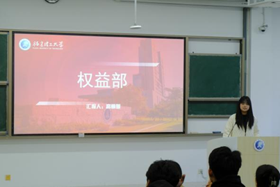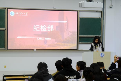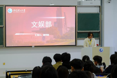 会议伊始,主持人郑华崴宣布了会议议程、会场纪律及汇报时间等要求。随后,全体部门负责人依次上台述职,围绕“部门职能、工作成果、不足反思、未来展望”四大维度,以“成果复盘+问题查摆+改进落地”为核心,重点呈现校园文化活动策划、师生权益服务、宣传推广落地等实效,直面协作衔接、工作细节把控等关键问题,针对性提出流程优化、跨校区联动强化、活动创新等具体举措,充分展现学生组织务实担当、主动改进的责任意识与青春活力。