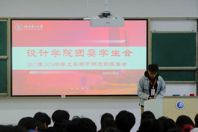 12月6日下午,福建理工大学设计学院团委学生会2025-2026学年上学期中期述职报告会于鼓山校区T-204教室顺利召开。院团委书记樵婷出席,第三届院团委学生会全体成员参会,会议由学生会主席郑华崴主持。