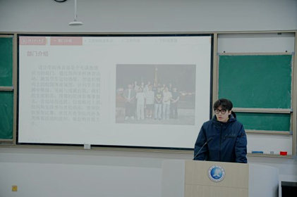 最后,樵婷老师作总结致辞。她首先对全体部门的阶段性工作成果给予充分肯定,并围绕“学生全面成长”提出三点殷切期望:一是工作要更主动,多学习、多担当。要提高积极性,主动向有经验的学长学姐请教,别怕做事、多扛责任,在实干中锻炼自己。二是学业和工作要两手抓、两手硬。要合理安排时间,既要认真完成学生工作,更要保证专业学习不掉队,争取能力和成绩都过硬。三是要注重全面成长,成为可堪大任的时代新人。要重视自身修养,学会团结协作,敢于创新思考,努力成为一名思想正、能力强、值得信赖的学生骨干。