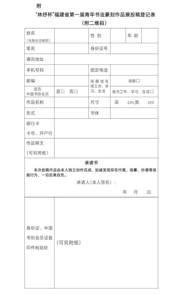 附件:“林纾杯”福建省第一届青年书法篆刻作品展登记表